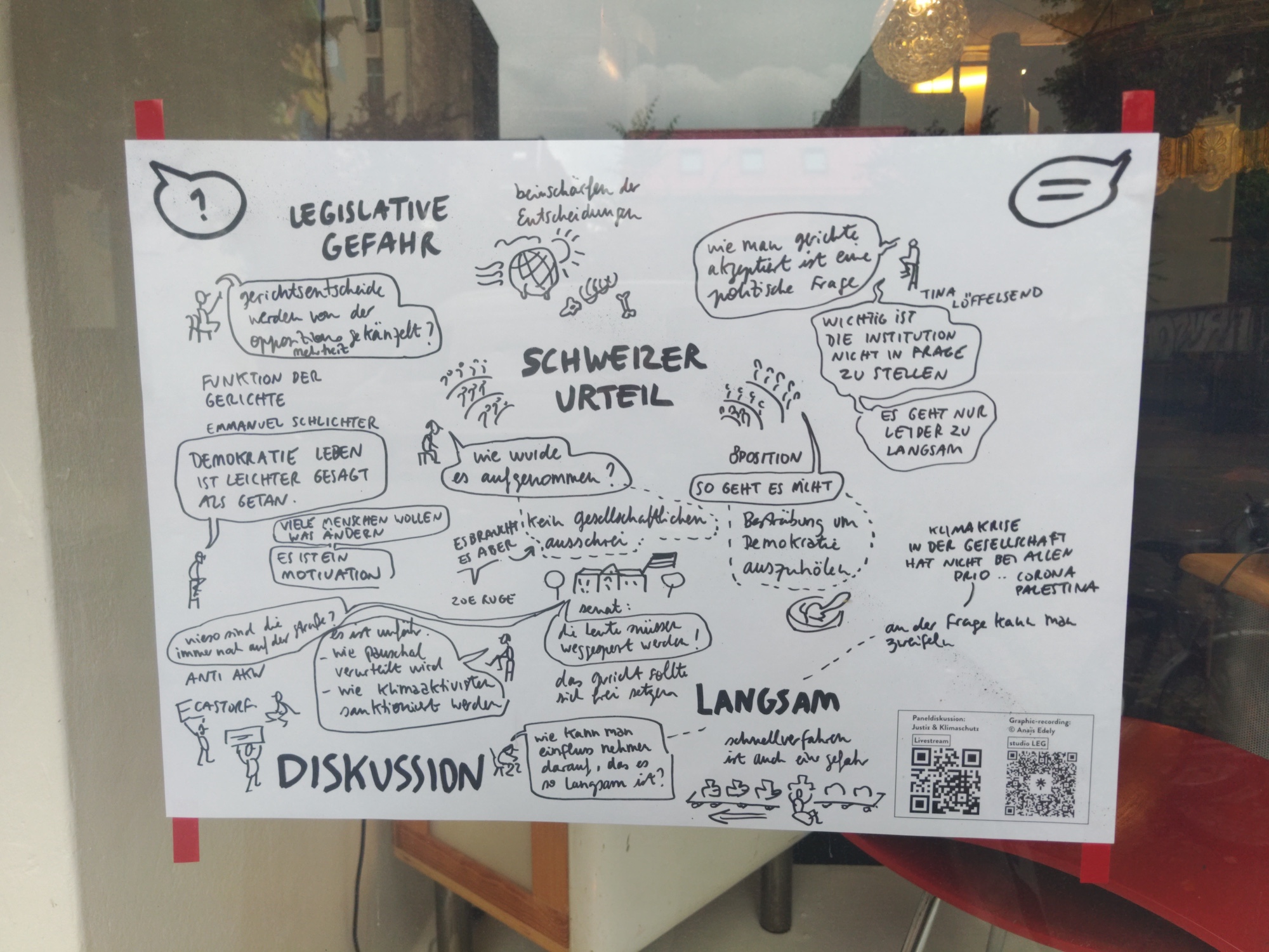 For the first time, we opened the space for a political discussion and invited various actors to talk about the role of court decisions in the fight against climate change. The discussion addressed both the various lawsuits against states for climate inaction and the lawsuits against climate activists in the context of civil disobedience actions. As a starting point was the question whether these rulings could play a role in German (or even European) politics and what long-term impact these rulings might have in terms of addressing climate change. This panel discussion was organized following the ruling of the European Court of Human Rights issued that spring, which marked a significant precedent by condemning the Swiss state for its failure to take action on climate change, making it the first such ruling at the European level.